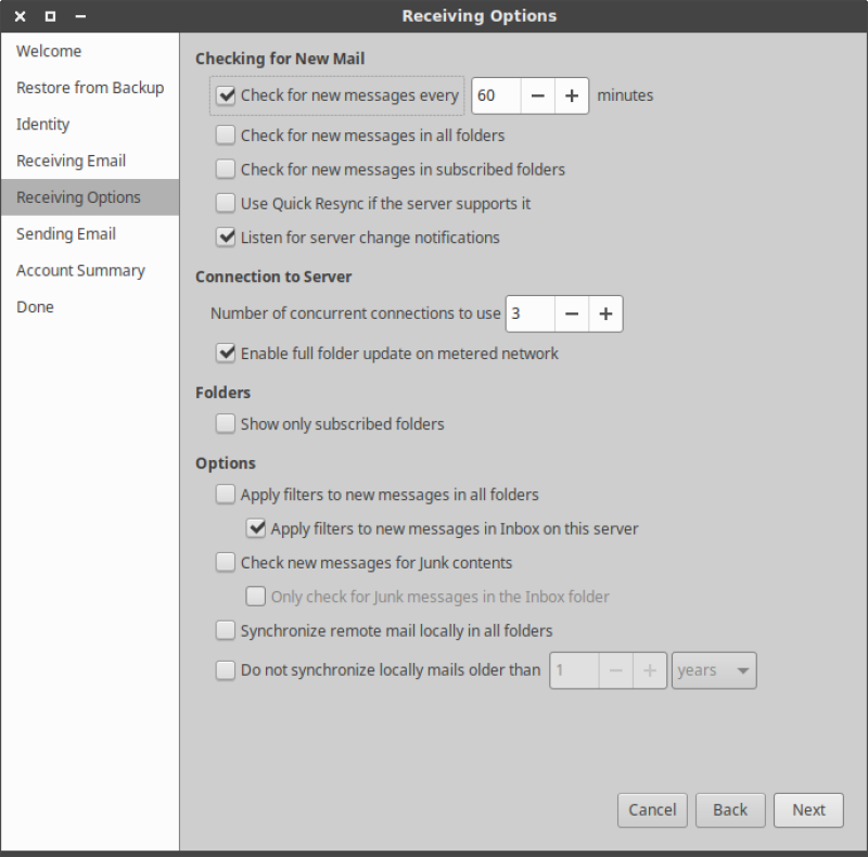1. When you first run Evolution an email account setup window will appear, titled “Welcome”.