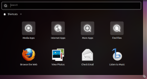 Clicking this button will open the dash (see below) where you can search for applications and files.