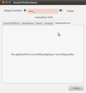 Clicking on this applications pops up a menu where you can set your volume level or mute the sound all together. There are also a set of quick-access control buttons for Banshee, the default Ubuntu music player