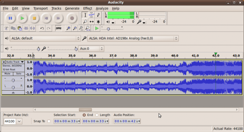 “Audacity is a free, easy-to-use and multilingual audio editor and recorder for Windows, Mac OS X, GNU/Linux and other operating systems. You can use Audacity to: Record live audio. Convert tapes and records into digital recordings or CDs. Edit Ogg Vorbis, MP3, WAV or AIFF sound files. Cut, copy, splice or mix sounds together. Change the speed or pitch of a recording. And more!”